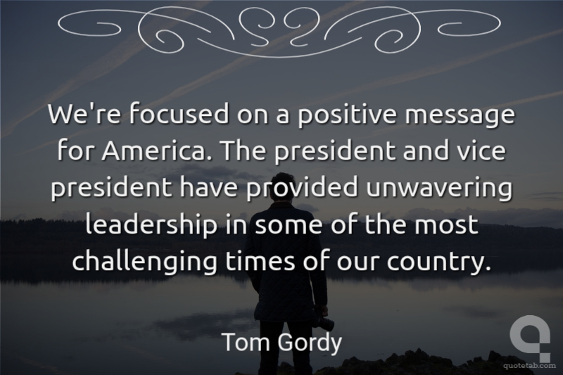 We're focused on a positive message for America. The president and vice president have provided unwavering leadership in some of the most challenging times of our country.