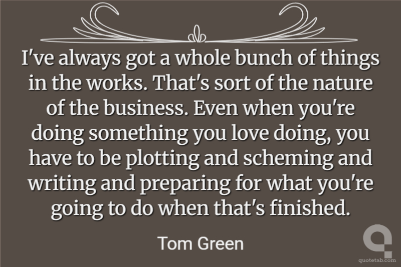 I've always got a whole bunch of things in the works. That's sort of the nature of the business. Even when you're doing something you love doing, you have to be plotting and scheming and writing and preparing for what you're going to do when that's finished.