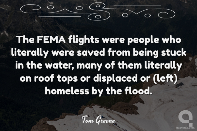 The FEMA flights were people who literally were saved from being stuck in the water, many of them literally on roof tops or displaced or (left) homeless by the flood.