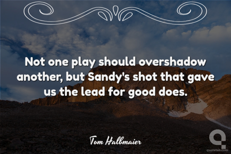 Not one play should overshadow another, but Sandy's shot that gave us the lead for good does.
