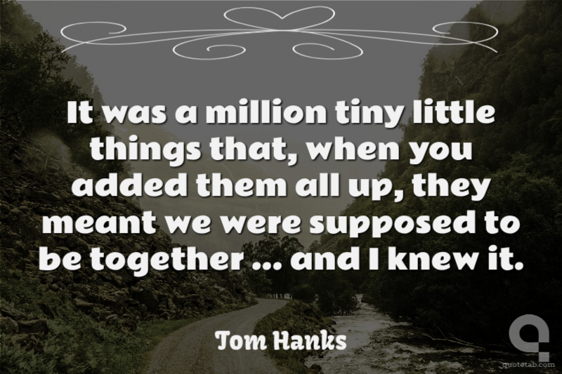 It was a million tiny little things that, when you added them all up, they meant we were supposed to be together ... and I knew it.