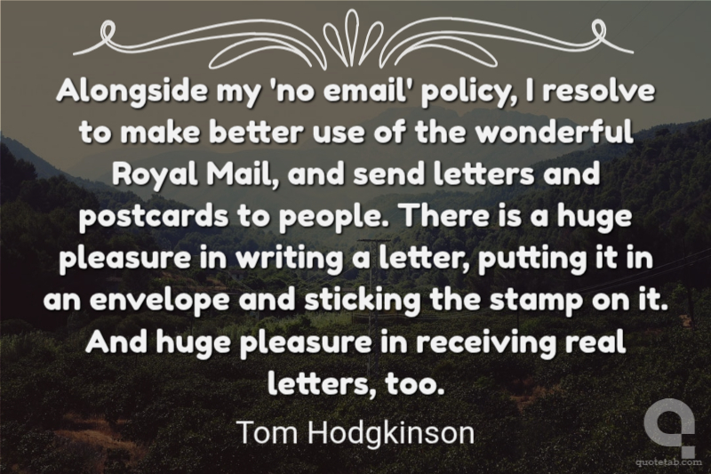 Alongside my 'no email' policy, I resolve to make better use of the wonderful Royal Mail, and send letters and postcards to people. There is a huge pleasure in writing a letter, putting it in an envelope and sticking the stamp on it. And huge pleasure in receiving real letters, too.