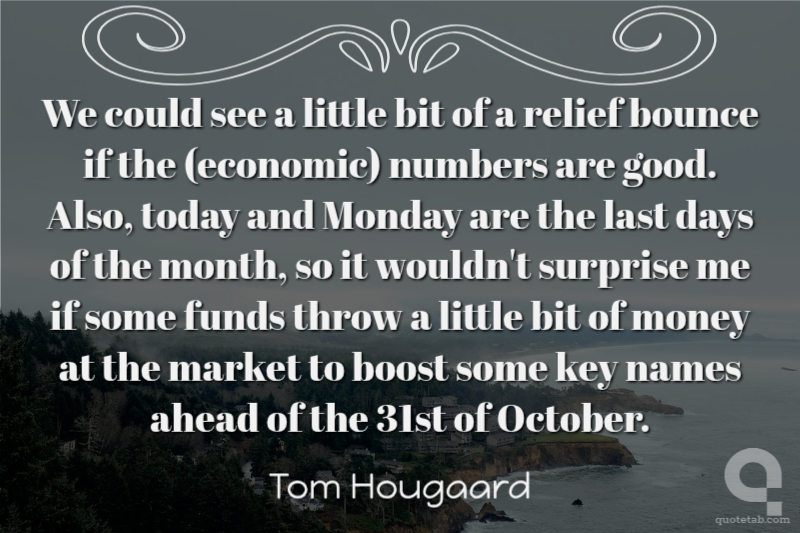 We could see a little bit of a relief bounce if the (economic) numbers are good. Also, today and Monday are the last days of the month, so it wouldn't surprise me if some funds throw a little bit of money at the market to boost some key names ahead of the 31st of October.