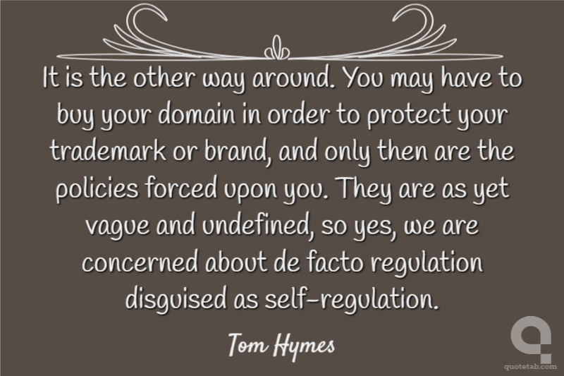 It is the other way around. You may have to buy your domain in order to protect your trademark or brand, and only then are the policies forced upon you. They are as yet vague and undefined, so yes, we are concerned about de facto regulation disguised as self-regulation.