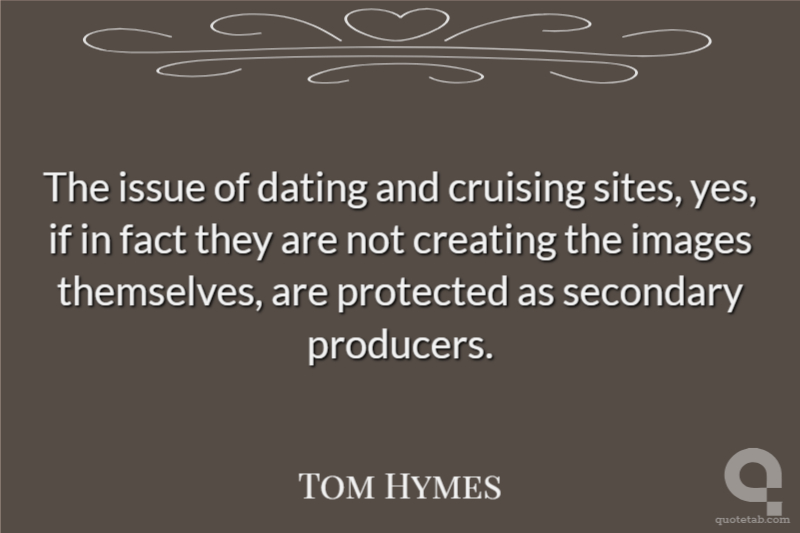 The issue of dating and cruising sites, yes, if in fact they are not creating the images themselves, are protected as secondary producers.