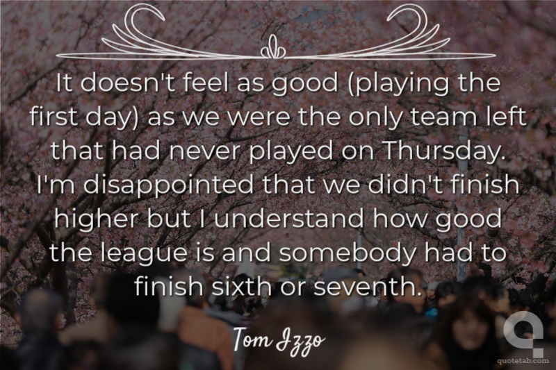 It doesn't feel as good (playing the first day) as we were the only team left that had never played on Thursday. I'm disappointed that we didn't finish higher but I understand how good the league is and somebody had to finish sixth or seventh.