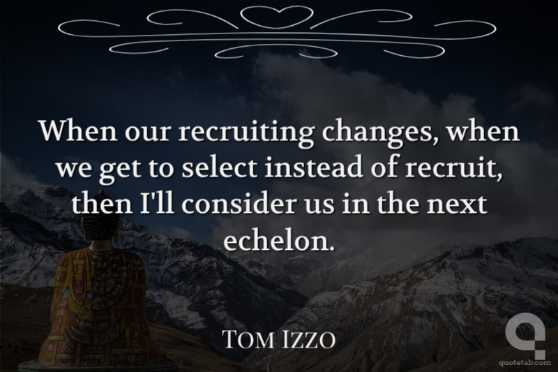When our recruiting changes, when we get to select instead of recruit, then I'll consider us in the next echelon.