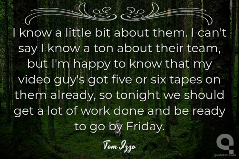 I know a little bit about them. I can't say I know a ton about their team, but I'm happy to know that my video guy's got five or six tapes on them already, so tonight we should get a lot of work done and be ready to go by Friday.