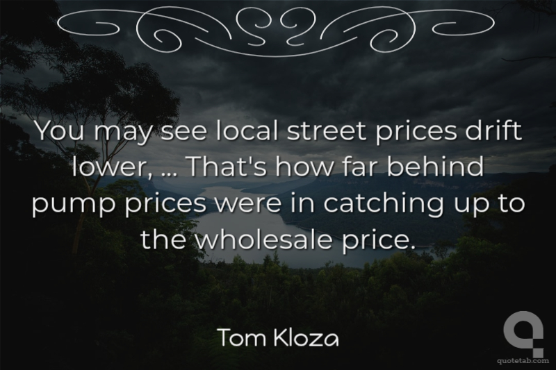 You may see local street prices drift lower, ... That's how far behind pump prices were in catching up to the wholesale price.
