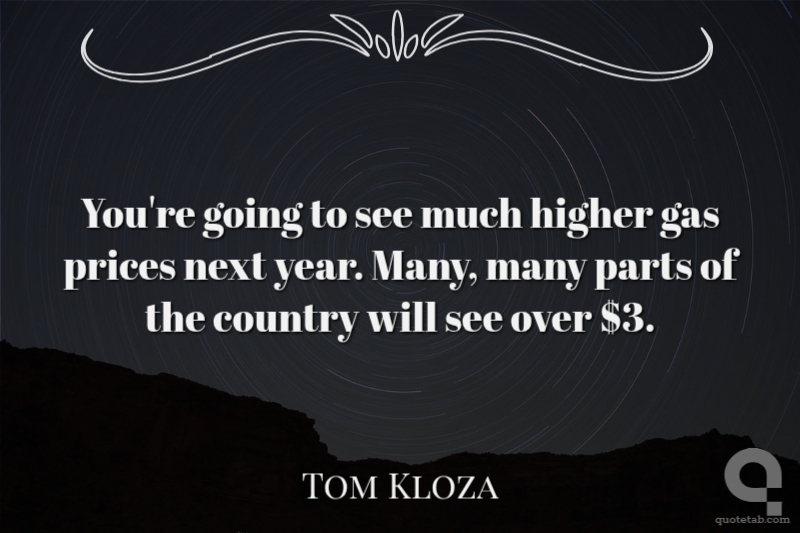 You're going to see much higher gas prices next year. Many, many parts of the country will see over $3.