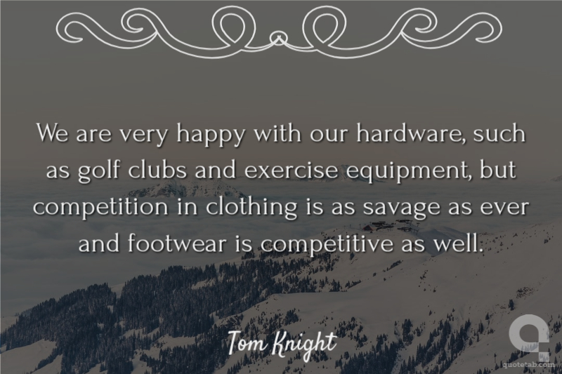 We are very happy with our hardware, such as golf clubs and exercise equipment, but competition in clothing is as savage as ever and footwear is competitive as well.