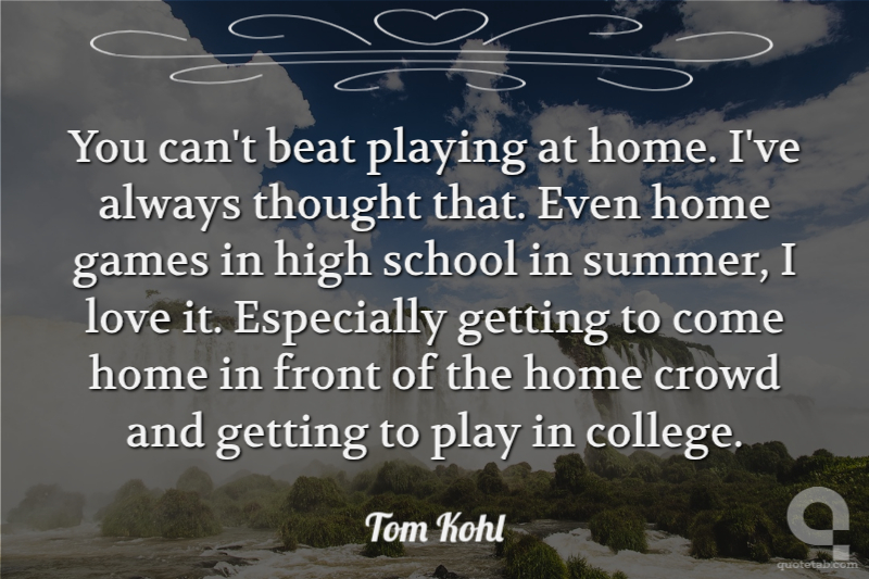 You can't beat playing at home. I've always thought that. Even home games in high school in summer, I love it. Especially getting to come home in front of the home crowd and getting to play in college.