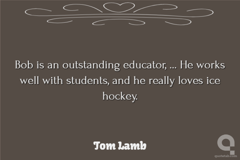 Bob is an outstanding educator, ... He works well with students, and he really loves ice hockey.