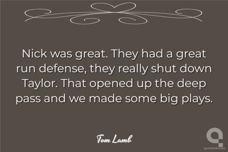 Nick was great. They had a great run defense, they really shut down Taylor. That opened up the deep pass and we made some big plays.