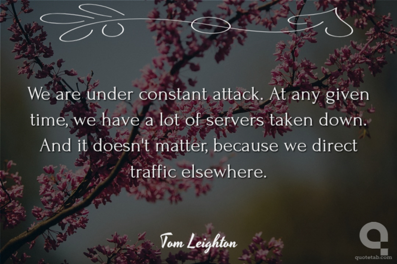 We are under constant attack. At any given time, we have a lot of servers taken down. And it doesn't matter, because we direct traffic elsewhere.