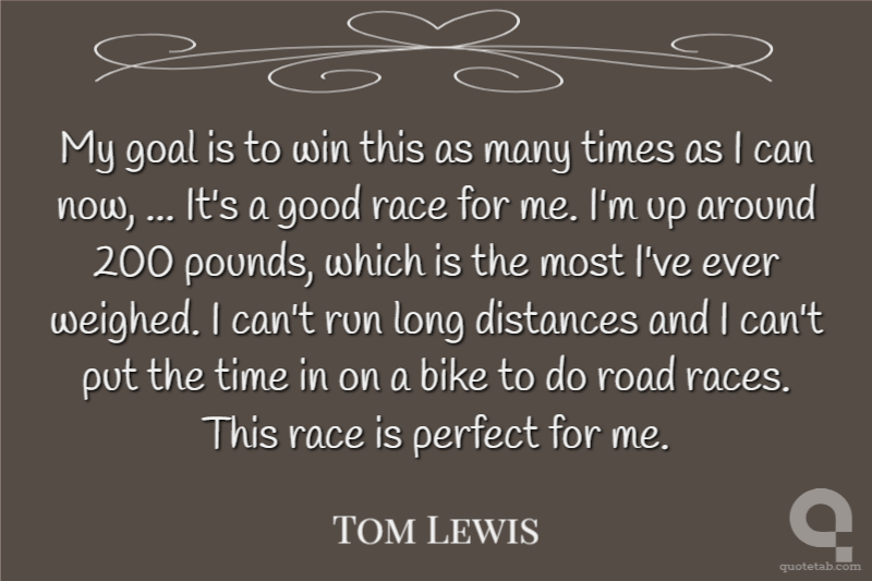 My goal is to win this as many times as I can now, ... It's a good race for me. I'm up around 200 pounds, which is the most I've ever weighed. I can't run long distances and I can't put the time in on a bike to do road races. This race is perfect for me.