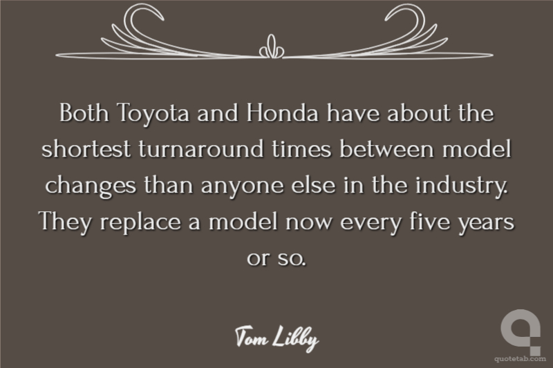 Both Toyota and Honda have about the shortest turnaround times between model changes than anyone else in the industry. They replace a model now every five years or so.