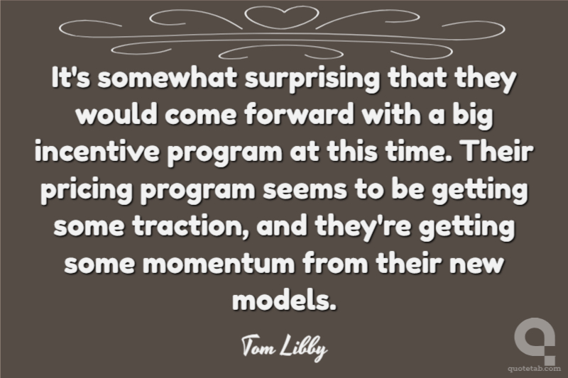 It's somewhat surprising that they would come forward with a big incentive program at this time. Their pricing program seems to be getting some traction, and they're getting some momentum from their new models.