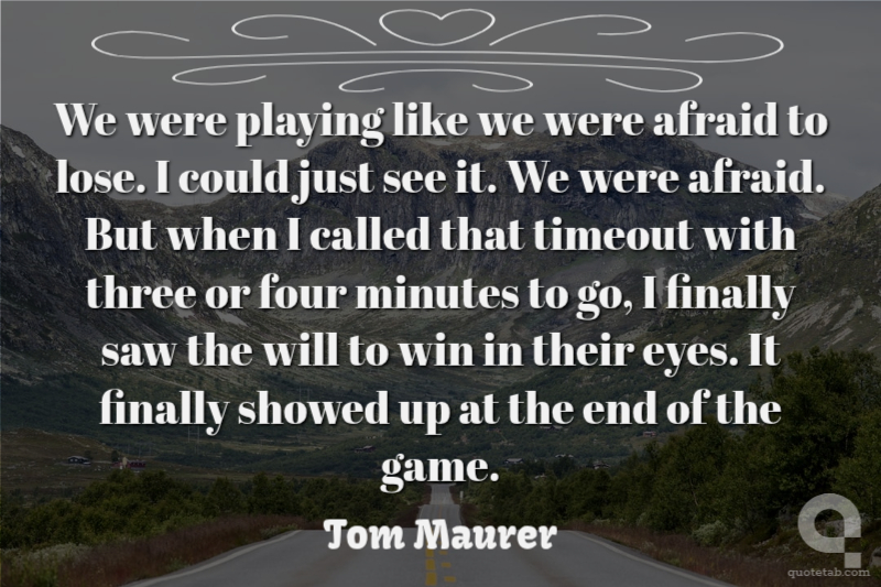 We were playing like we were afraid to lose. I could just see it. We were afraid. But when I called that timeout with three or four minutes to go, I finally saw the will to win in their eyes. It finally showed up at the end of the game.