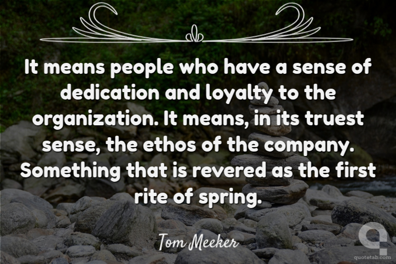 It means people who have a sense of dedication and loyalty to the organization. It means, in its truest sense, the ethos of the company. Something that is revered as the first rite of spring.