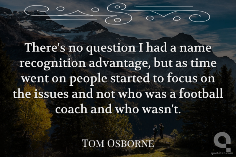 There's no question I had a name recognition advantage, but as time went on people started to focus on the issues and not who was a football coach and who wasn't.
