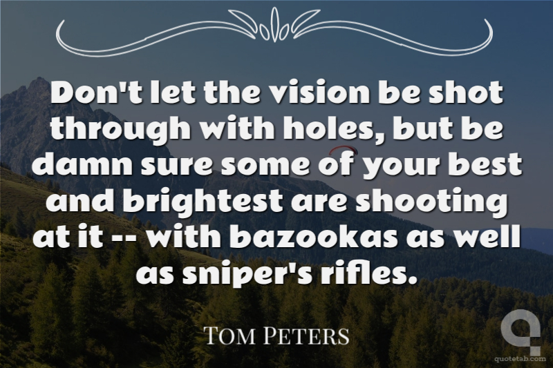 Don't let the vision be shot through with holes, but be damn sure some of your best and brightest are shooting at it -- with bazookas as well as sniper's rifles.