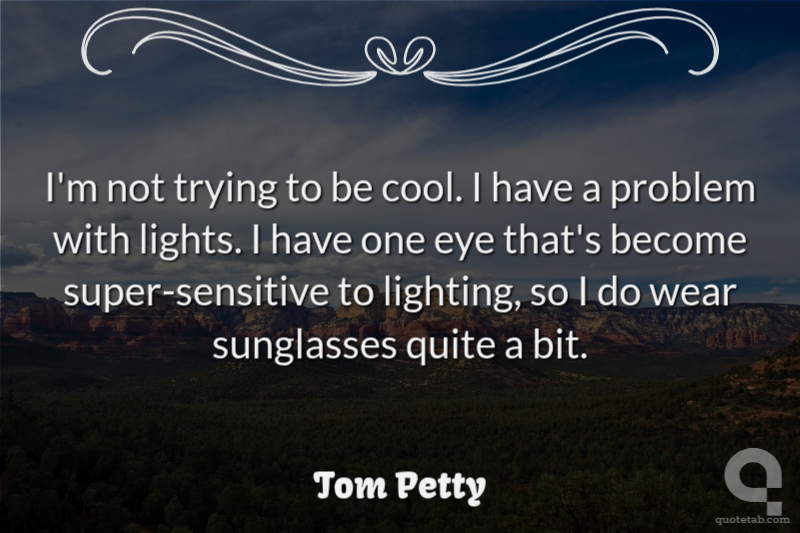 I'm not trying to be cool. I have a problem with lights. I have one eye that's become super-sensitive to lighting, so I do wear sunglasses quite a bit.