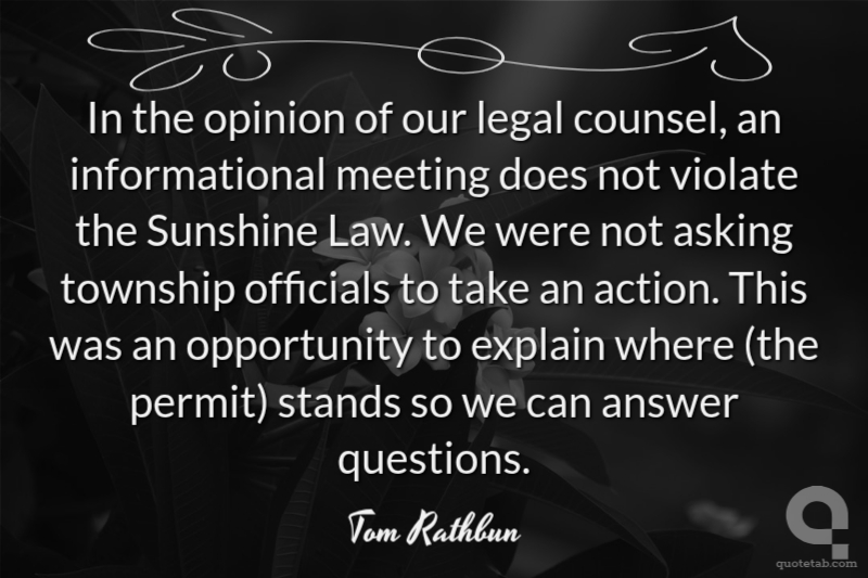 In the opinion of our legal counsel, an informational meeting does not violate the Sunshine Law. We were not asking township officials to take an action. This was an opportunity to explain where (the permit) stands so we can answer questions.