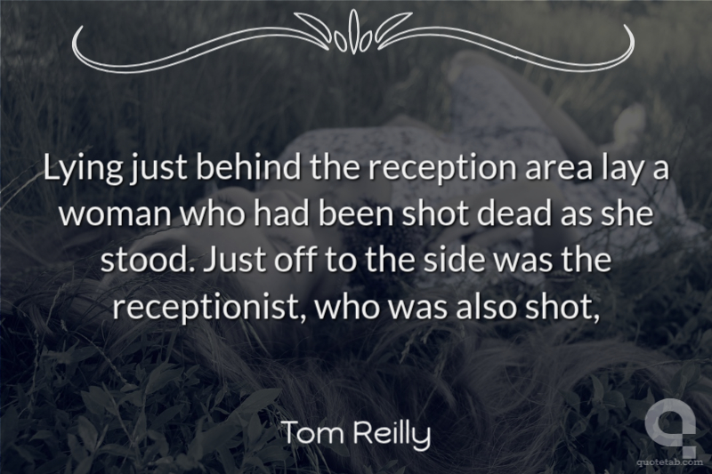 Lying just behind the reception area lay a woman who had been shot dead as she stood. Just off to the side was the receptionist, who was also shot,