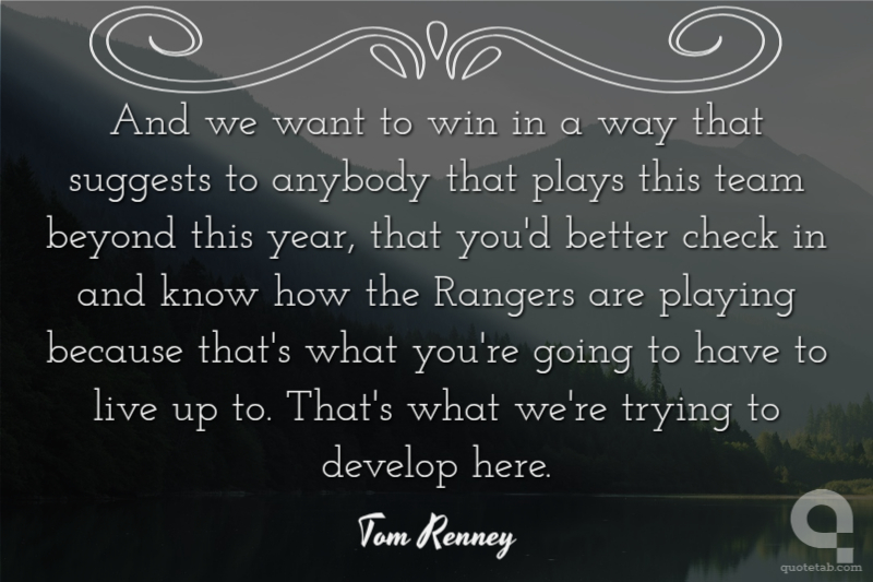 And we want to win in a way that suggests to anybody that plays this team beyond this year, that you'd better check in and know how the Rangers are playing because that's what you're going to have to live up to. That's what we're trying to develop here.