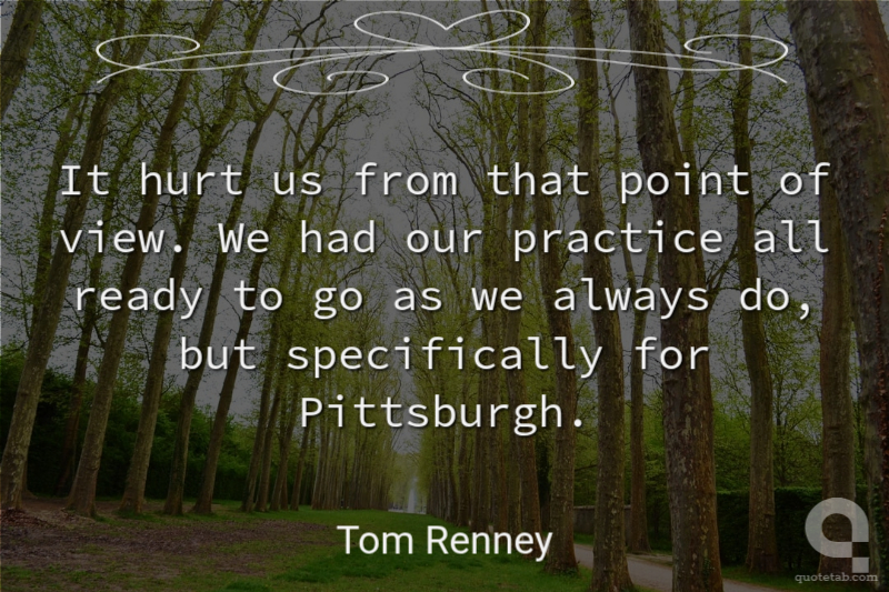 It hurt us from that point of view. We had our practice all ready to go as we always do, but specifically for Pittsburgh.