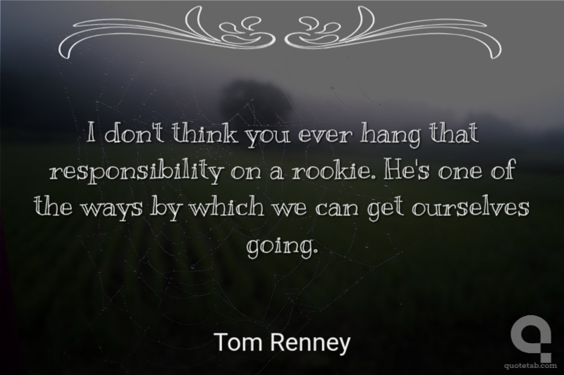 I don't think you ever hang that responsibility on a rookie. He's one of the ways by which we can get ourselves going.