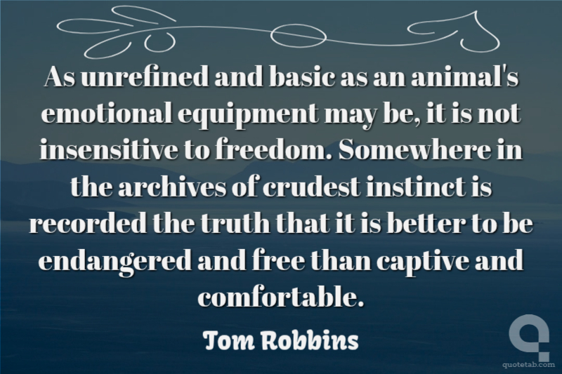 As unrefined and basic as an animal's emotional equipment may be, it is not insensitive to freedom. Somewhere in the archives of crudest instinct is recorded the truth that it is better to be endangered and free than captive and comfortable.