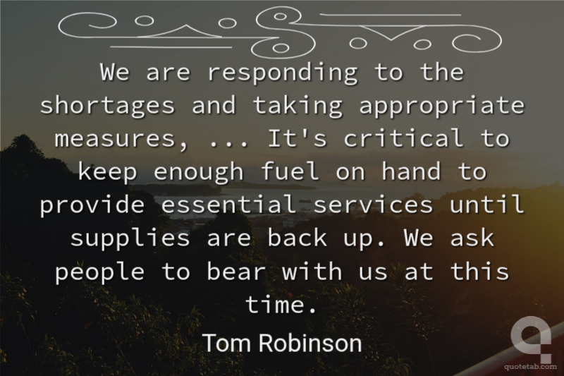 We are responding to the shortages and taking appropriate measures, ... It's critical to keep enough fuel on hand to provide essential services until supplies are back up. We ask people to bear with us at this time.