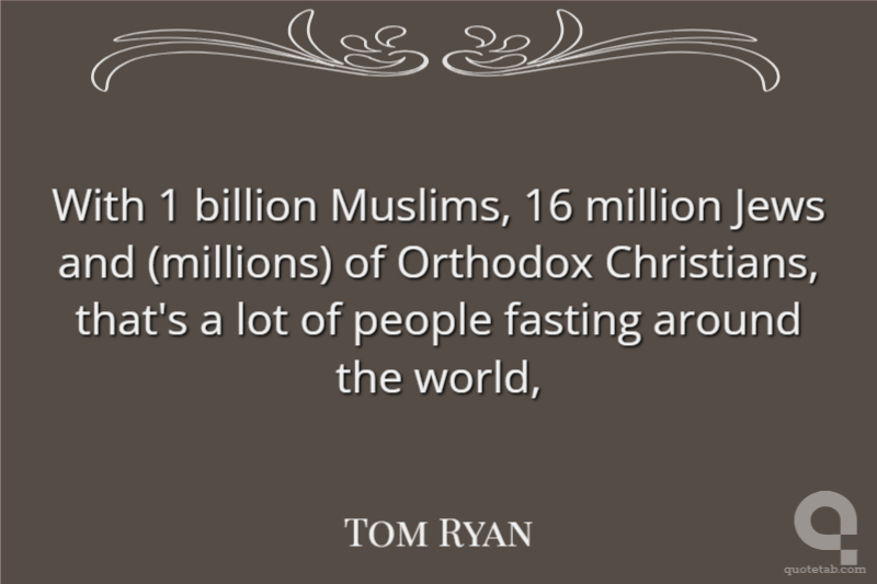 With 1 billion Muslims, 16 million Jews and (millions) of Orthodox Christians, that's a lot of people fasting around the world,