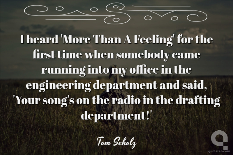 I heard 'More Than A Feeling' for the first time when somebody came running into my office in the engineering department and said, 'Your song's on the radio in the drafting department!'