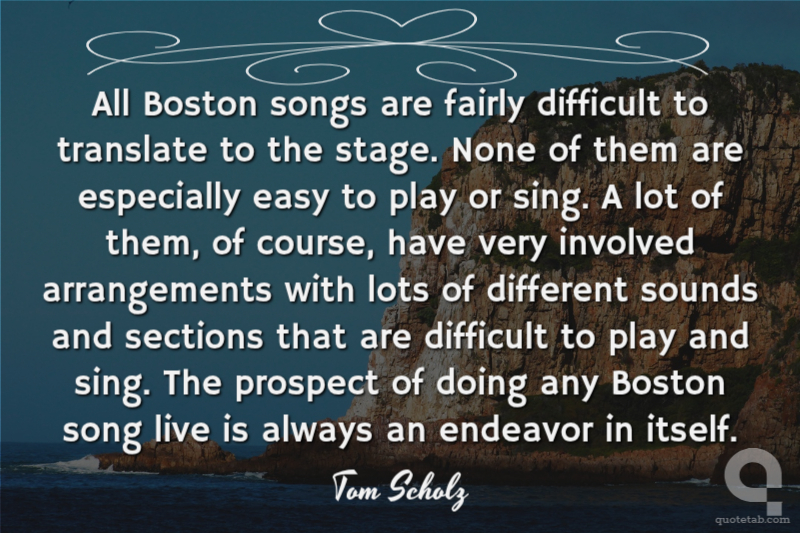 All Boston songs are fairly difficult to translate to the stage. None of them are especially easy to play or sing. A lot of them, of course, have very involved arrangements with lots of different sounds and sections that are difficult to play and sing. The prospect of doing any Boston song live is always an endeavor in itself.