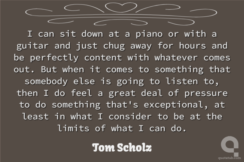 I can sit down at a piano or with a guitar and just chug away for hours and be perfectly content with whatever comes out. But when it comes to something that somebody else is going to listen to, then I do feel a great deal of pressure to do something that's exceptional, at least in what I consider to be at the limits of what I can do.