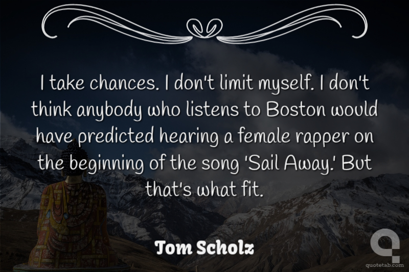 I take chances. I don't limit myself. I don't think anybody who listens to Boston would have predicted hearing a female rapper on the beginning of the song 'Sail Away.' But that's what fit.