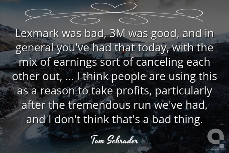 Lexmark was bad, 3M was good, and in general you've had that today, with the mix of earnings sort of canceling each other out, ... I think people are using this as a reason to take profits, particularly after the tremendous run we've had, and I don't think that's a bad thing.