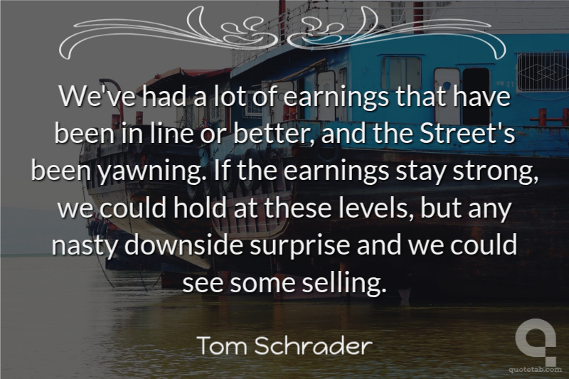 We've had a lot of earnings that have been in line or better, and the Street's been yawning. If the earnings stay strong, we could hold at these levels, but any nasty downside surprise and we could see some selling.