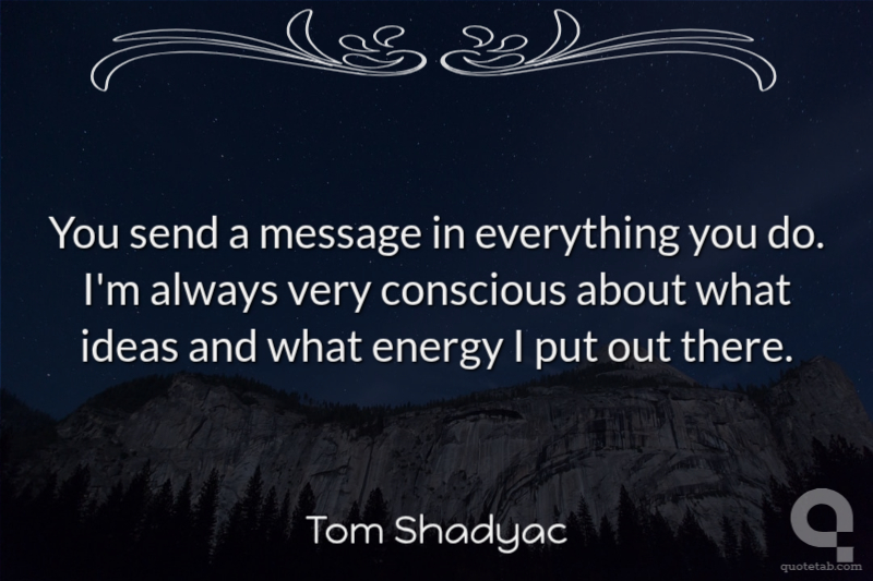 You send a message in everything you do. I'm always very conscious about what ideas and what energy I put out there.