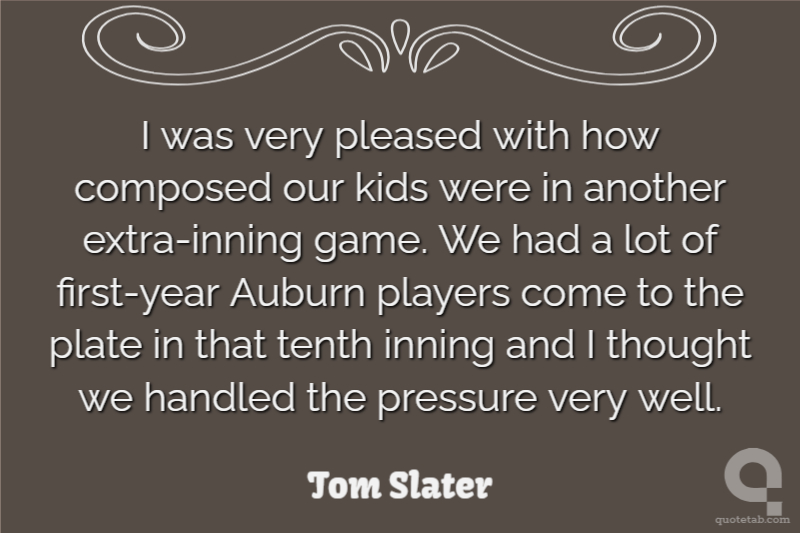 I was very pleased with how composed our kids were in another extra-inning game. We had a lot of first-year Auburn players come to the plate in that tenth inning and I thought we handled the pressure very well.
