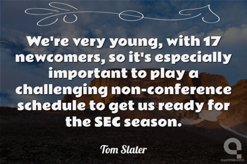 We're very young, with 17 newcomers, so it's especially important to play a challenging non-conference schedule to get us ready for the SEC season.