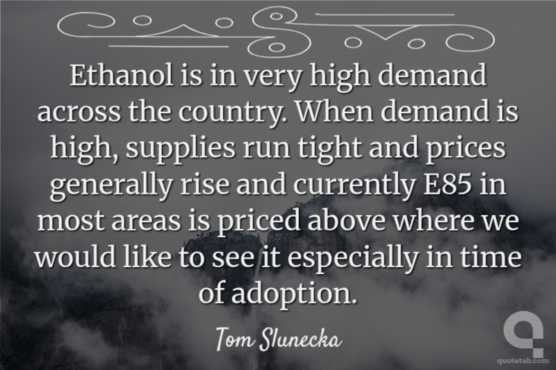Ethanol is in very high demand across the country. When demand is high, supplies run tight and prices generally rise and currently E85 in most areas is priced above where we would like to see it especially in time of adoption.