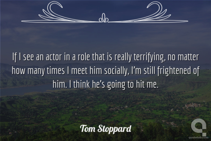 If I see an actor in a role that is really terrifying, no matter how many times I meet him socially, I'm still frightened of him. I think he's going to hit me.