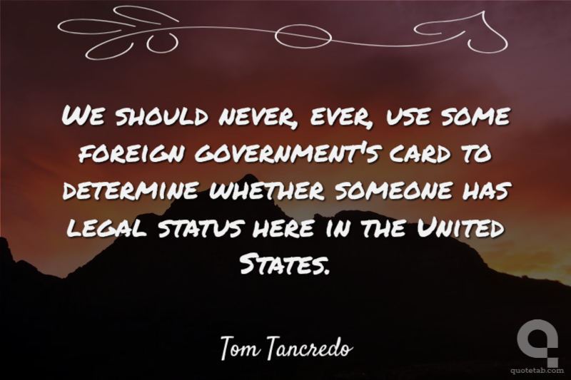 We should never, ever, use some foreign government's card to determine whether someone has legal status here in the United States.