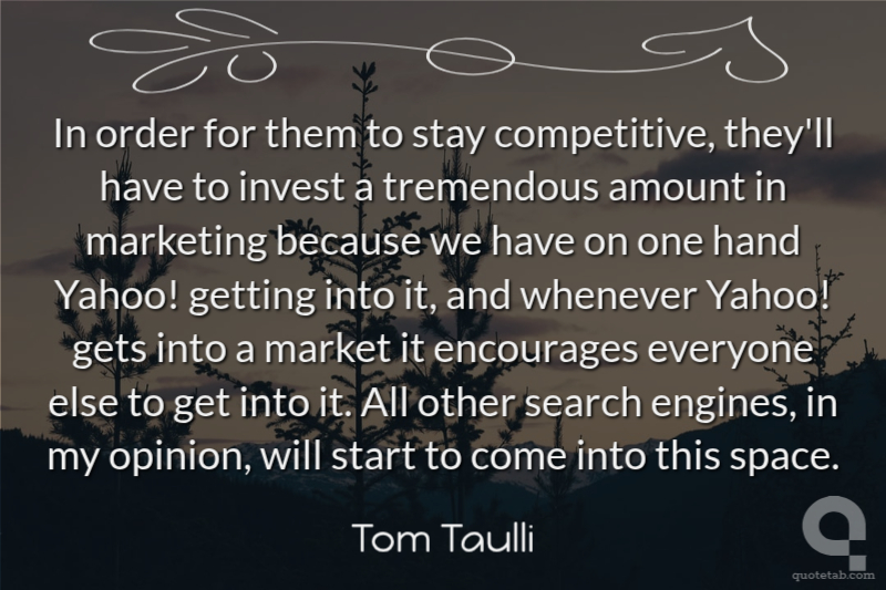In order for them to stay competitive, they'll have to invest a tremendous amount in marketing because we have on one hand Yahoo! getting into it, and whenever Yahoo! gets into a market it encourages everyone else to get into it. All other search engines, in my opinion, will start to come into this space.