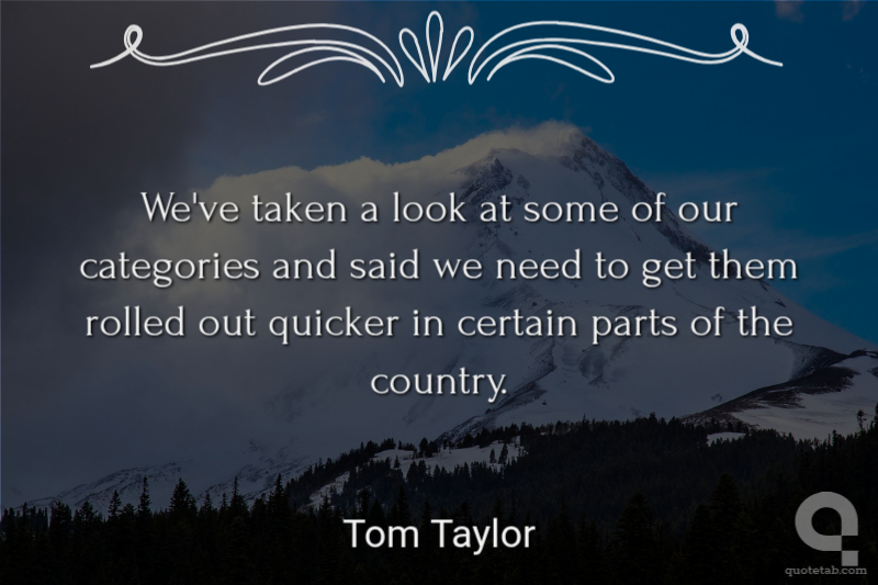 We've taken a look at some of our categories and said we need to get them rolled out quicker in certain parts of the country.