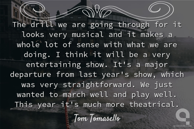 The drill we are going through for it looks very musical and it makes a whole lot of sense with what we are doing. I think it will be a very entertaining show. It's a major departure from last year's show, which was very straightforward. We just wanted to march well and play well. This year it's much more theatrical.